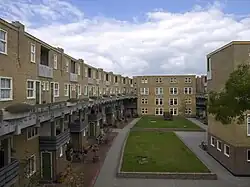 The bovenstraat walkway concept, 'Streets in the sky', influential on Dutch architecture was developed further by Le Corbusier for his Unite d'Habitation in Marseilles, and later by Peter and Alison Smithson for Golden Lane Estate and Robin Hood Gardens, in London.[1]