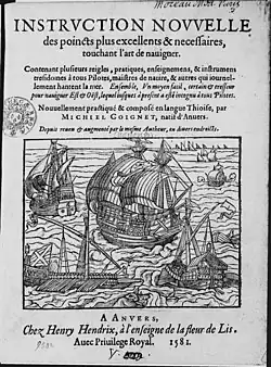An expanded, French-language version of the 'Nieuwe Onderwijsinghe prepared by Coignet was published in 1581 by Hendrik Hendriksen under the title Instruction nouvelle des poincts plus excellents et nécessaires, touchant l'art de naviguer... nouvellement practiqué et composé en langue thioise, par Michiel Coignet,... Depuis reveu et augmenté par le mesme autheur...[16]