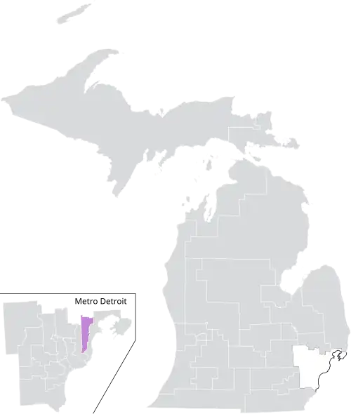 The district was largely located within Michigan's 14th congressional district, also extending into the 9th and 11th districts. It overlapped with the 26th, 27th, 35th, and 37th districts of the Michigan House of Representatives.[8]