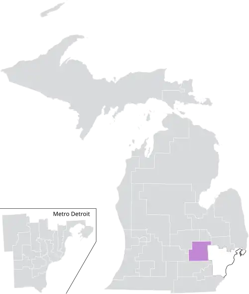 The district was largely located within Michigan's 8th congressional district, also extended into the 7th and 12th districts. It overlapped with the 42nd, 47th, and 52nd districts of the Michigan House of Representatives.[7]