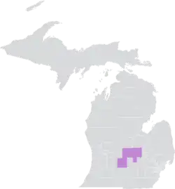 The district overlapped with Michigan's 4th, 7th, and 8th congressional districts, and with the 65th, 67th, 69th, 71st, 85th, and 93rd districts of the Michigan House of Representatives.[6]