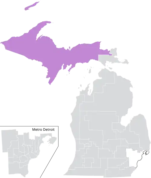 Michigan's 38th Senate district is one of 38 districts in the Michigan Senate. The 38th district was created with the adoption of the 1963 Michigan Constitution, as the previous 1908 state constitution only permitted 34 senatorial districts.[2][3] It has been represented by Republican Ed McBroom since 2019, succeeding fellow Republican Tom Casperson.[4]