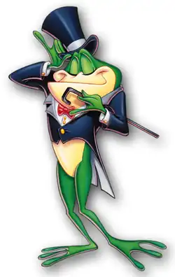 Michigan Jackson[1] Frog is an animated cartoon character from the Warner Bros.' Merrie Melodies film series. Originally a one-shot character, his only appearance during the original run of the Merrie Melodies series was as the star of the One Froggy Evening short film (December 31, 1955), written by Michael Maltese and directed by Chuck Jones.[2] In this cartoon, partly inspired by a 1944 Cary Grant film entitled Once Upon a Time, Michigan is a male frog who wears a top hat; carries a cane; and sings pop music, ragtime, Tin Pan Alley hits, and other songs from the late 19th and early 20th centuries while dancing and performing acrobatics in the style of early 20th century vaudeville. Michigan is discovered inside a metal box sealed within the cornerstone of a recently demolished building by a hapless construction worker. He appears as an ordinary frog with a disinterested facial expression until he takes out his top hat and cane and happily demonstrates his talents. The man plans to profit off Michigan but catches on too late that the frog performs exclusively for whomever possesses his box, and changes back into an ordinary frog the second anyone else sees him, thus thwarting the man's dreams of wealth and showing the frog for who he really is.