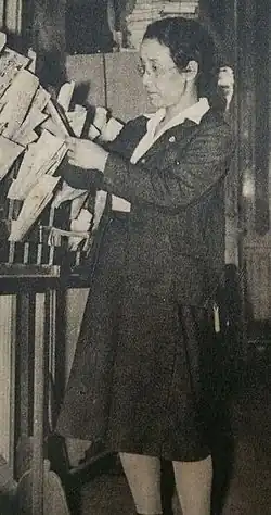 Michiko Fujiwara (藤原 道子, Fujiwara Michiko; 26 May 1900 – 26 April 1983[1]) was a Japanese nurse and politician. She initially campaigned for her husband, the politician Kenji Yamazaki, but when he returned from the war with a new wife and child she ran against him. She defeated him as a candidate from the Socialist Party of Japan.[2] She would become concerned with fighting child prostitution.[3]