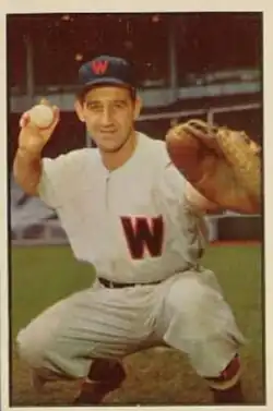 Newton Michael Grasso (May 10, 1920 – October 15, 1975) was an American professional baseball catcher and veteran of World War II who, after over two years as a Prisoner of War of the Germans,[1] played all or parts of seven seasons in Major League Baseball. He appeared in 322 total games for the New York Giants in 1946 and 1955, the Washington Senators from 1950 to 1953, and the Cleveland Indians in 1954. The Newark, New Jersey, native stood 6 feet (1.8 m) tall and weighed 190 pounds (86 kg); he batted and threw right-handed.