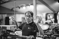 Hart plays, or has played, drum set, RAMU,[31] gong, tubular bells, tambourine, timpani, bongos, timbales, maracas, bass drum, snare drum, triangle, güiro, djembe, castanets, didgeridoo, glockenspiel, cymbals, surdo, saron, beats, tar, berimbau, kalimba, cowbell, rattle, shekere, rainstick, agogo bells, bells, wood block, taragat, balafon, tarang, gourd, clacker, bombo, dumbek, tom-toms, caxixi, water gong, talking drum, blaster beam, theremin, and pan flute.[32]