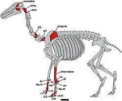 - ^ Andrew J. McGrath; Federico Anaya; Darin A. Croft (2018). "Two new macraucheniids (Mammalia: Litopterna) from the late middle Miocene (Laventan South American Land Mammal Age) of Quebrada Honda, Bolivia". Journal of Vertebrate Paleontology. 38 (3): e1461632. Bibcode:2018JVPal..38E1632M. doi:10.1080/02724634.2018.1461632. S2CID 89881990.