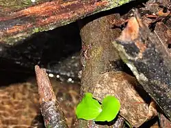 Its natural habitats are tropical moist lowland forests and rivers.[1] It prefers damp leaf litter by fast-flowing forest streams.[3]