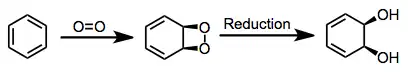 Oxidations by bacterial dioxygenases give cis-dihydrodiols. In contrast, mammalian and fungal arene dioxygenases yield trans-dihydrodiols.[1] The cis configuration of the product together with isotopic labeling studies implicate the intermediacy of dioxetanes.[1] This intermediate has not been observed, however.