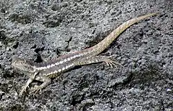Microlophus bivittatus, the San Cristóbal lava lizard, is a species of lava lizard endemic to San Cristóbal Island in the Galápagos Islands.[1][2][3] The species is commonly attributed to the genus Microlophus but has been attributed to the genus Tropidurus.[2] They are currently under threat by invasive cats on the island.[1][4] The lizard is also closely related to the Microlophus occipitalis which radiated off of the bivittatus.[5]