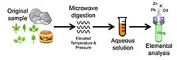 Microwave digestion is a chemical technique used to decompose sample material into a solution suitable for quantitative elemental analysis.[1] It is commonly used to prepare samples for analysis using inductively coupled plasma mass spectrometry (ICP-MS), atomic absorption spectroscopy, and atomic emission spectroscopy (including ICP-AES).