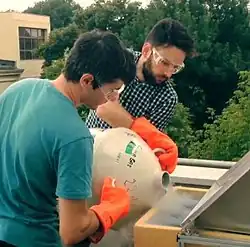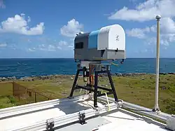 For weather and climate monitoring, microwave radiometers are operated from space as well as from the ground.[1][2] As remote sensing instruments, they are designed to operate continuously and autonomously often in combination with other atmospheric remote sensors like for example cloud radars and lidars. They allow the derivation of important meteorological quantities such as vertical temperature and humidity profiles, columnar water vapor quantity, and columnar liquid water path with a high temporal resolution on the order of minutes to seconds under nearly all weather conditions.[3] Microwave radiometers are also used for remote sensing of Earth's ocean and land surfaces, to derive ocean temperature and wind speed, ice characteristics, and soil and vegetation properties.[1][2]