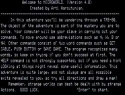 Microworld is a 1981 text adventure published by Med Systems Software for the TRS-80. An Atari 8-bit computer version followed.[1]