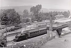 The population of Petworth in 1851 was 2,439 and of Midhurst 1,481.[16] A separate company, the Mid-Sussex and Midhurst Railway, received authority to continue the line to Midhurst under the Mid Sussex and Midhurst Junction Railway Act 1859 (22 & 23 Vict. c. cxxv) of 13 August 1859. It was originally the intention of the Mid-Sussex and Midhurst Railway to seek to extend its line to Petersfield, but the LBSCR would not support such an extension, as being contrary to a territorial exclusivity agreement with the LSWR.[12] There was some delay due to the difficulty in raising capital, but the line to Midhurst opened on 15 October 1866.[15][1][11] The company was acquired by the LBSCR by the London, Brighton and South Coast Railway (Capital and Powers) Act 1866 (29 & 30 Vict. c. cclxxxi) of 30 July 1866, but this only took effect in June 1874.[12][17]