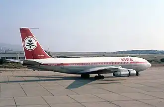 The aircraft involved was a Boeing 720-023[2] that first flew on 23 September 1960. The aircraft was registered as N7534A and was delivered to American Airlines on 10 October. In July 1971, American Airlines sold the aircraft back to lessor. On 3 March 1972, the aircraft was sold to Middle East Airlines where it was re-registered as OD-AFT. The aircraft was powered by four Pratt & Whitney JT3D-1-MC7 turbofan engines with water injection and a thrust of 17,000 pounds-force (76 kN) each.[3]