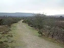 In the early 1900s, the line to Norden clay works had been extended over the main line railway to serve clay pits on its western side. This line was extended across the Wareham to Corfe Castle road by a level crossing to serve further clay pits to the north east. However, by this time the plateway's days were numbered. The channel at Middlebere was silting up, limiting the size of vessel that could approach the quay. The company already had a deeper-water quay at Goathorn on the southern shore of Poole Harbour, used for the export of clay from pits at nearby Newton.[1][2]