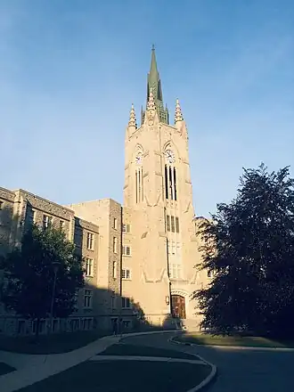 Middlesex College is an academic building located on the campus of the University of Western Ontario. The building is known for its collegiate Gothic architecture, spire, and clock tower. It currently houses the Department of Mathematics and Computer Science.[1]