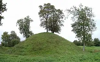 Middleton Mount was a motte and bailey castle built during the Norman period.[1] The motte is 49 m in diameter, protected by an 11 m wide ditch.[2] The castle's crescent-shaped bailey and three rectangular enclosures of uncertain medieval date lay alongside the motte.[2] The castle was built by the Normans on a pre-existing Anglo-Saxon estate centre, a common practice after the Norman conquest of England.[3]