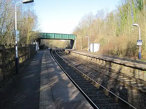 Middlewood railway station serves the villages of High Lane in the Metropolitan Borough of Stockport, Greater Manchester, and Middlewood, near Poynton in the Cheshire East district of England. It is a stop on the Buxton Line between Manchester Piccadilly, Stockport and Buxton. The station is managed and served by Northern Trains; it is the last station on the line within the Transport for Greater Manchester ticketing area.