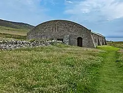 The Midhowe Chambered Cairn is a large Neolithic chambered cairn located on the south shore of the island of Rousay, Orkney, Scotland. The name "Midhowe" comes from the Iron Age broch known as Midhowe Broch, that lies just west of the tomb.[1]
