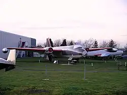 The museum's two largest aircraft are an Avro Vulcan B.2 and an Armstrong Whitworth Argosy AW.650 (series 101). The restored Avro Vulcan is a delta-winged aircraft that was originally part of the V bomber force and could be equipped with nuclear missiles as part of Britain's role in NATO's nuclear deterrent force during the Cold War. It is on display near the museum's car park, together with an Avro Blue Steel missile, an early design format of such a nuclear missile, and a Boulton Paul BP.111A, an experimental delta-winged aircraft of the 1950s.
