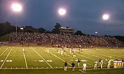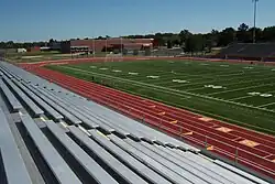 The field was upgraded in 2004 with installation of an artificial surface, AstroTurf XPe,[5] the same product used at many professional and college sports facilities. Very few high school fields use artificial turf due to the high cost. Additional improvements that same year included paving & surfacing, fencing, a new synthetic track surface[6] and audio & video cable installation to simplify setup for broadcast and/or taping of stadium events.[7]