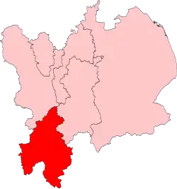 It consisted of the Westminster Parliament constituencies (under the terms of The Parliamentary Constituencies (England) Order 1970, which had taken effect at the February 1974 general election) of Blaby, Bosworth, Loughborough, Meriden, Nuneaton, and Rugby.[1]