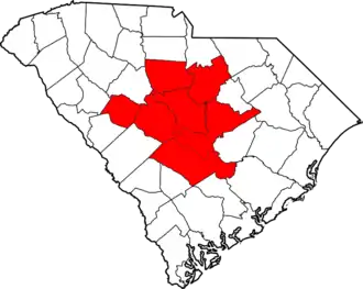 This region is largely coextensive with the Columbia metropolitan area (which includes Newberry and Orangeburg counties) but .