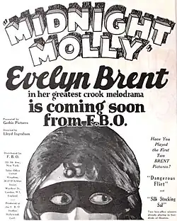 - ^ Sewell, Charles S. (February 7, 1925). "Midnight Molly; Evelyn Brent Has Dual Role in Entertaining Crook Picture, Her Newest Production for F.B.O." The Moving Picture World. 72 (6). New York City: Chalmers Publishing Co.: 558, 586. Retrieved August 23, 2021.