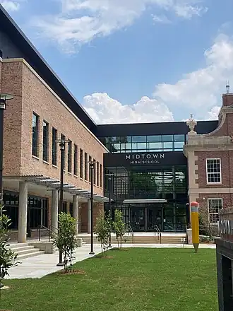 ![]() Midtown High School seen from its new front entrance (Renovated 2020) on Charles Allen Dr. | |