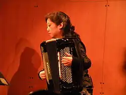 Mie Miki is a classical accordion musician. She took up the accordion at age 4[2] and has been dubbed "Queen of the Classical Accordion".[3][4] She is a professor of accordion as well as Vice President at Folkwang University of the Arts[5] and is honorary professor at the Xinjian Arts College.[6] She has published at least 16 albums since 1984 and her work appears on more than 26 albums.[7] She won the Japan Music Pen Club Award 2014[8] and the Opus Klassik prize in 2018.[9][10]