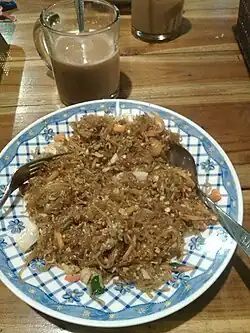 Mie lethek (lit. 'Ugly noodles') is a noodle dish originating from Srandakan, Bantul Regency, Special Region of Yogyakarta.[1] This dish primarily consists of grated cassava and grated coconut, typically using a bull to process the noodles. The word "lethek" is derived from its brownish color, resembling the bark of a tree.[2] Mie lethek is less popular in the Yogyakarta region due to competition from other dishes like petis, kuning, and instant noodles. However, in Bantul, mie lethek is well-known and enjoyed by the local community.[3][4]