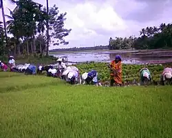 Kerala currently offers the highest wages not only in India but also among the SAARC Countries. The high minimum wages with comparatively better living conditions in Kerala, even in villages, are often what motivates migrant workers, as the wages are often double or even more than three times than wages obtained in other major cities in India, which also have higher living costs.[16] This is often attributed to the socialist-leaning Kerala model of development and is a key attraction to the migrant labourers.[17] For agricultural work like ploughing and tilling, the average daily wage in Kerala was more than Rs 713, followed by Tamil Nadu at Rs 515. The lowest wage being paid in the country was Rs 187. In states like Bihar, Uttar Pradesh, Gujarat and Odisha, workers are usually paid wages of around 200 rupees, but which can be as low as 90 rupees. The wages for non-agricultural work is also much higher in Kerala. Carpenters and plumbers get wages which are two times the national wage average for their profession. The data shows that while the average wage ranges are between Rs 200 and Rs 300 for different professions in states across the country, employers in Kerala do not pay below Rs 600 for any job.[18][19] It is even said that a migrant labourer from Bihar, who would get Rs 40 at his native place, makes a minimum of Rs 600 in Kerala.[20][21] However, Keralite workers are paid even higher amounts and so, most of the times the local residents prefer the migrant workers because of the comparatively cheaper labour and also because the migrants work harder than the locals. Even though the wages for labour are high, the cost of living in the state is the same or even lower than in many other parts of the country. Over 70 per cent of them earn wages above Rs.300 per day.