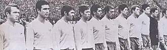 Mocanu played 31 games at international level of Romania, making his debut on 1 June 1966 under coach Ilie Oană in a friendly which ended with a 1–0 loss against West Germany.[1][13] He went on to play four games at the Euro 1968 qualifiers and two at the successful 1970 World Cup qualifiers, being used at the final tournament by coach Angelo Niculescu in all the minutes of the three group matches as Romania did not advance to the next stage and had a appreciated performance in the 3–2 loss against Brazil in the duel with his direct opponent, Jairzinho.[1][5][6][14] He made three appearances at the 1972 Euro qualifiers, including his last appearance which took place on 22 September 1971 in a 4–0 away victory against Finland.[1]