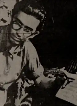 Dragomir survived the civil war of 1941, in which the Guard was chased out by Conducător Ion Antonescu. He resumed university classes in 1942, but was mobilized in 1943 and saw action in World War II until 1945.[1] His service overlapped with the coup of August 23, 1944, which saw Romania abandoning the Axis Powers and aligning itself with the Soviet Union—in his later poems, Dragomir described this as an act of national liberation.[17] He continued his studies, with interruptions, until graduating in 1948.[1] His return to journalism came in late 1944, when Ștefan Baciu hosted his pieces, signed as Miguel y Caramba, in his Humorul magazine.[18] From 1945 to 1946, he was cultural officer in the Romanian Communist Party-affiliated Organization of Progressive Youth (UTP),[1] while his wife, known as "Titi", was employed in an identical position by the Union of Antifascist Women.[19]