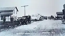 In 1906, the community officially incorporated as a village. While the lumber industry began declining the area, Mikado transitioned into a farming community. Much of the land surrounding the community was converted into farmland, and the community continued to grow and included a large cedar yard, grain elevator, bank, the post office, sawmill, cheese factory, brick yard, and several grocery stores.[18] In 1907, Mikado received its own school in the form of a log one-room schoolhouse called the Bailey School.[19]