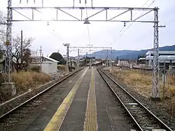 Mikawa-Tōgō Station was established on September 23, 1900 as Kawaji Station (川路駅, Kawaji-eki) on the now-defunct Toyokawa Railway (豊川鉄道, Toyokawa Tetsudō). On August 1, 1943, the Toyokawa Railway was nationalized along with some other local lines to form the Japanese Government Railways (JGR) Iida Line, and the station was renamed to its present name.[1] Scheduled freight operations were discontinued in 1962. The station has been unattended since 1984. Along with its division and privatization of JNR on April 1, 1987, the station came under the control and operation of the JR Tōkai.