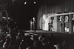 In 1966, Nichols was a star stage director and Time magazine called him "the most in-demand director in the American theatre."[11] Although he had no experience in filmmaking, after befriending[23] Elizabeth Taylor and Richard Burton, Warner Bros. invited Nichols to direct a screen adaptation of Edward Albee's Who's Afraid of Virginia Woolf? starring Elizabeth Taylor, Richard Burton, George Segal, and Sandy Dennis for which he received a fee of $400,000.[24] The film was critically acclaimed, with critics calling Nichols "the new Orson Welles",[11] and a financial success,[25][26] the number 1 film of 1966.[27]
