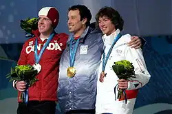 ![]() 2010 Winter Olympic men's Snowboard Cross medalists. Left: Mike Robertson | |||||||||||||||
