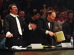Michael William Tenay (born March 1, 1955) is an American podcast presenter and retired professional wrestling play-by-play announcer known for his time as an announcer for World Championship Wrestling (WCW) and Total Nonstop Action Wrestling. Tenay, according to Impact, "is known as 'The Professor' for his extensive knowledge of the sport".[1] Former Impact Executive Producer and WCW president Eric Bischoff has described Tenay as "a walking encyclopedia of knowledge".[2]