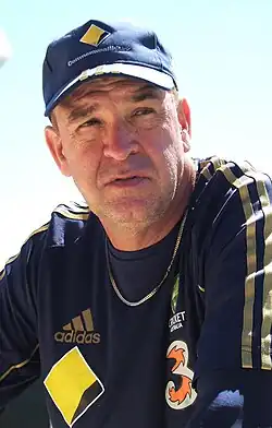 Young's career took another twist in 2000 when the Australian cricket federation approached him for help. Fielding has long been an under-developed aspect of cricket, as teams have concentrated on developing bowlers and batsmen. The Australians, observing how fielding was a central part of baseball, decided to exploit an opportunity by having Young coach their players on catching, throwing and positioning. Young was appointed as an assistant coach until 2005 when his contract was not renewed and instead moved back to Chicago to manage the Rockford Riverhawks. During the 2005 Ashes series the Australian teams fielding had slipped and the side lost the Ashes to England for the first time since 1987.[3] John Buchanan then made the decision for Australia to have a full-time fielding coach and Young became speculated in the media as the first baseball coach to coach a national cricket team and announced he would like to finish his managerial career doing it.[4][5] In 2009 he spent three weeks working with the Indian cricket team as a fielding consultant.[6]