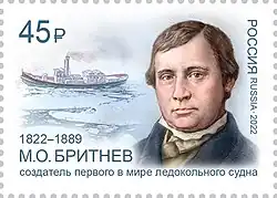 - ^ № 2932. Серия «Русские кораблестроители». 200 лет со дня рождения М.О. Бритнева (1822–1889), инженера-судостроителя, изобретателя первого в мире ледокола. rusmarka.ru