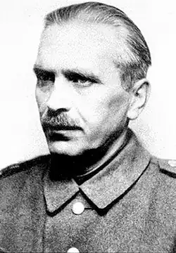 Mikhail Alekseyevich Meandrov (Russian: Михаи́л Алексе́евич Меа́ндров) (22 October 1894 – 1 August 1946) was an Imperial Russian and later Soviet officer. Taken prisoner by the Germans in World War II near Leningrad in 1941, he later became an important commander (general) in the Nazi-allied Russian Liberation Army. Taken prisoner by the Soviets, he was executed in 1946.
