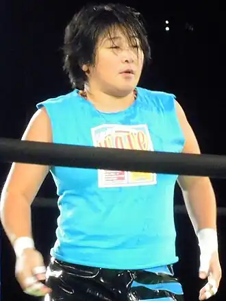 As a freelancer, she is known for competing in various promotions. On the fifteenth night of All Japan Women's Pro Wrestling's 2002 Japan Grand Prix from July 6, Futagami teamed up with Mika Akino in a losing effort against Kayo Noumi and Yumiko Hotta.[5] At Battle Zone 6-7, an event promoted by New Japan Pro Wrestling on June 7, 2002, she teamed up with Bionic J, Faby Apache, Lioness Asuka and Mika Akino in a losing effort against Ai Fujita, baby A, Mariko Yoshida, Michiko Omukai and Rie Tamada.[6] At Jaguar Yokota 30th Anniversary Convention, an event promoted by the Japanese independent scene on March 11, 2007, Futagami competed in a 32-woman battle royal won by Devil Masami and also involving Mariko Yoshida, Yuki Miyazaki, Sachie Abe and many others.[7] At Sendai Girls Dantai Taikou Flash Tournament, an event promoted by Sendai Girls' Pro Wrestling on November 15, 2011, she teamed up with Toshie Uematsu, Yumi Ohka, Shuu Shibutani, and Moeka Haruhi as "Team Wave" in a losing effort against Team JWP (Command Bolshoi, Kayoko Haruyama, Kaori Yoneyama, Leon, and Hanako Nakamori) in a first-round match.[8] At a house show promoted by Pro Wrestling Freedoms on April 25, 2012, Futagami teamed up with The Winger and Toshie Uematsu in a losing effort against Great Kojika, Antonio Honda and Ken Ohka.[9] At New Ice Ribbon #518 on December 11, 2013, she teamed up with Hamuko Hoshi to defeat Risa Sera and Rutsuko Yamaguchi.[10] At BJW Osaka Surprise 12 ~ Thanksgiving Day, an event promoted by Big Japan Pro Wrestling on November 23, 2013, Futagami teamed up with Team Heavy Metal (Madoka and Shinya Ishikawa) in a losing effort against Strong BJ (Daisuke Sekimoto and Yuji Okabayashi) and Yumi Ohka.[11] At DDT Never Mind 2013, an event promoted by DDT Pro Wrestling on December 23, Futagami teamed up with Daisuke Sasaki and Antonio Honda in a losing effort against Kudo, Saki Akai and Yasu Urano.[12]