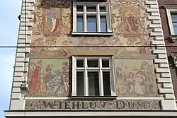 Aleš is probably best known today as being one of the painters (the other being František Ženíšek) that redecorated the famous foyer of the Czech National Theatre.[4] Aleš did gain fame during his lifetime, especially for his architectural artwork, but his paintings were mostly only praised after his death. Now many streets in the Czech Republic are named after Aleš. Aleš's work, while not embraced by the German Nazis who controlled the Czech lands from 1938 to 1945, was used extensively for propaganda purposes by the later Communist regime especially during the 1950s.[5] He was voted #89 in a 2005 poll of the most important Czech.[6]