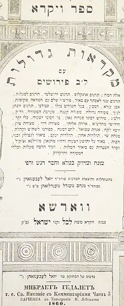 - ^ Mikraot Gedolot: Vayikra (in Hebrew and Aramaic). Vilna: Romm Publishing House. 1899. Retrieved 23 July 2013.
