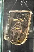 In 1958 the excavations moved to the palace building, to the west of Church 3. The palace had been built of stone, but the stone had been removed and the rectangular outline was preserved by the robber trenches.[9] The building was 26 m long and 10 m wide, with a hall with a fireplace, at the west end and a smaller chamber at the east end.[10] Some rich burials were found in the area and there was extensive evidence of metalworking including goldsmithing.[11] There was some evidence of settlement that pre-dated the Great Moravian Empire including a hoard of clay animal figurines. A number of iron styli for writing on wax tablet were discovered, suggesting that the building would have been used for administrative purposes.