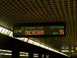 All the stations are provided with LED screens showing the destination and waiting time of coming trains. In every station, a recorded voice announces the direction of every approaching train and, at the platform, the name of the station. While older trains have no on-train information, the new Meneghino and Leonardo trains and the driverless trains on Line 5 are equipped with displays and recorded announcements in Italian and in English.