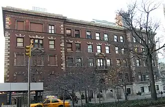 Milbank, Brinckerhoff, and Fiske Halls are historic buildings located on the campus of Barnard College in Morningside Heights, Manhattan, New York City. The three interconnected buildings are collectively known as Milbank Hall. They were designed by Charles A. Rich (1854–1943), built between 1897 and 1898, and contain classrooms, laboratories, administrative offices and dormitory. They are four stories on a raised basement built of dark red brick with white limestone and terra cotta details. They combine Italian Renaissance massing and detail with Colonial Revival inspired features.[2] The roof of Milbank Hall houses the Arthur Ross Greenhouse.[3]
