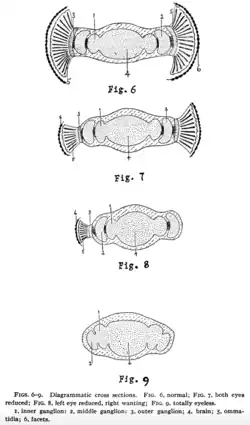 - ^ Hoge Richards, Mildred; Furrow, Esther Y. (April 1925). "The Eye and Optic Tract in Normal and "Eyeless" Drosophila". Biological Bulletin. 48 (4): 243–258. doi:10.2307/1536570. JSTOR 1536570.